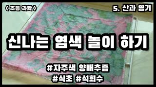 |초등과학| 신나는 염색 놀이 하기 | 5학년 2학기, 5단원 산과 염기 | 자주색 양배추즙 | 식초 | 오렌지주스 | 사과주스 | 사이다 | 석회수 | 베이킹소다 | 세정제 |